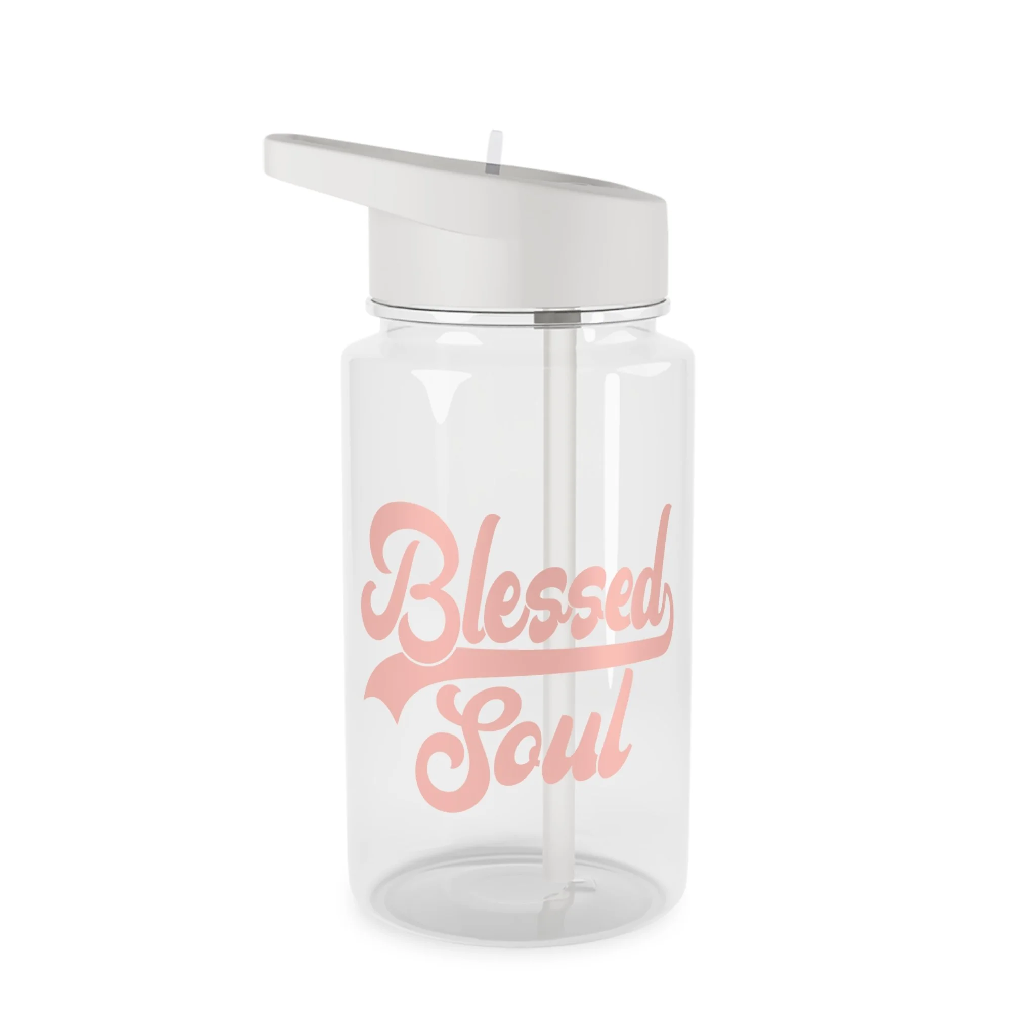 Give your body the hydration it needs with the Blessed Soul water bottle. This lightweight, clear Tritan water bottle with a soft, rosy script that reads “Blessed Soul” also minimzes waste. The streamlined screw-on lid features a foldable straw and spill-resistant design so you can sip while you move. Enhance the balance and vitality of your body and soul.